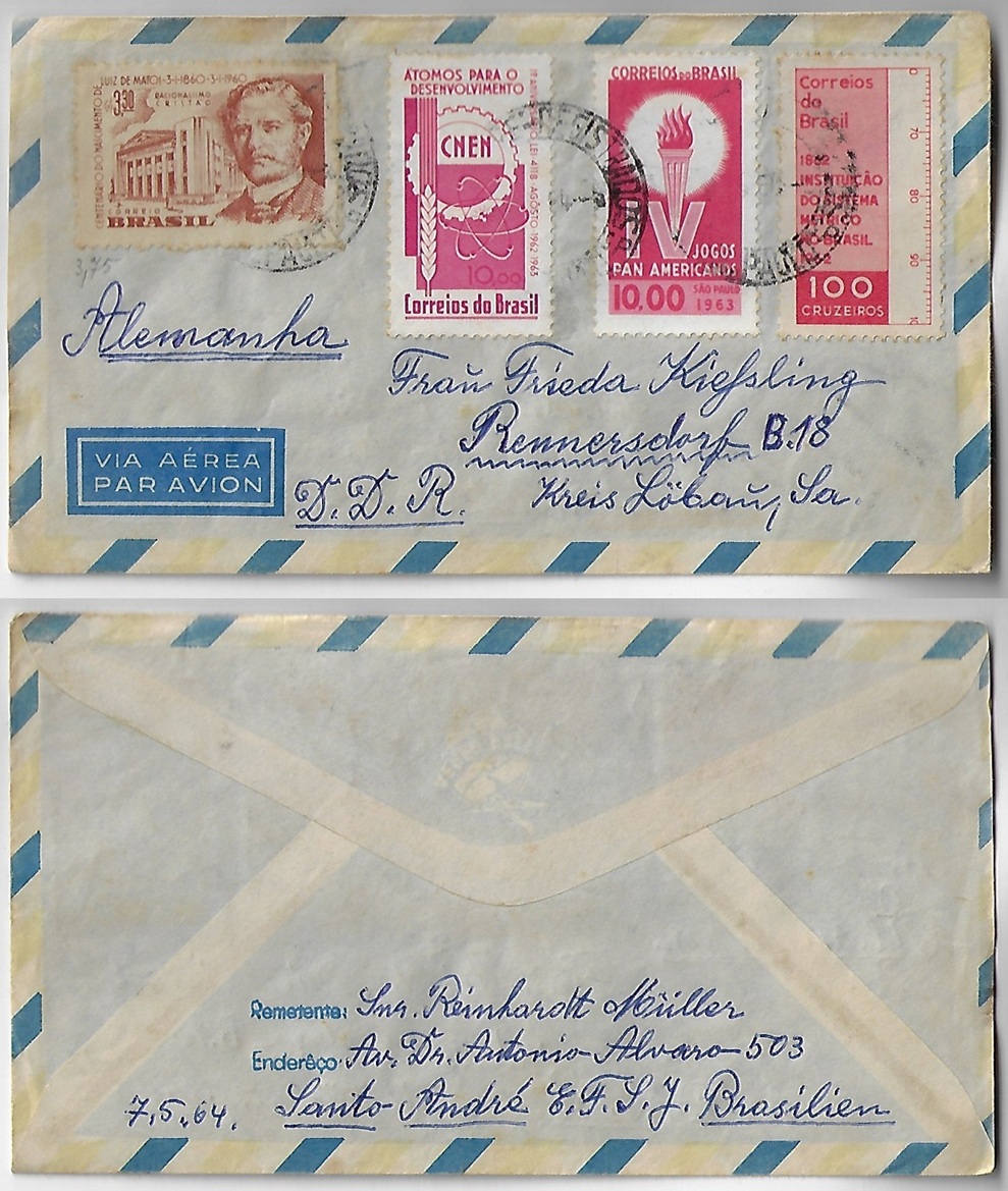 | 77255 | 1900s, inteiro postal CT-19 enviado de Blumenau para Berlin, reendereçado para Groß-Lichterfelde, o destinatário é o parlamentar Hermann Müller-Sagan, 3 selos adicionas para porte internacional caíram | 10,00 | Foto |