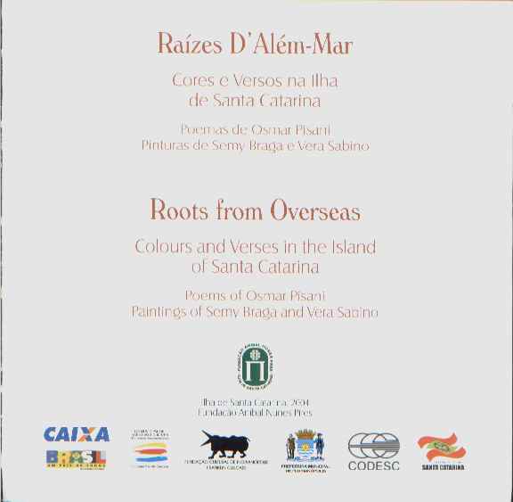 | 19736 | PISANI, Osmar, BRAGA, Semy e SABINO, Vera. "Raízes D'Além-Mar", 2004, Florianópolis, capa dura, tiragem 2.000 exemplares, 72 páginas, ilustrado com pinturas | 10,00 | Foto |