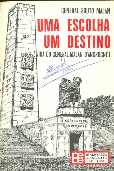 | 22380 | MALAN, Souto. "Uma Escolha um Destino: Vida do General Malan D'Angrogne", Editora Bibliex, 1977, 364 páginas, ilustrado, assinado por antigo proprietário | 12,00 | Foto |
