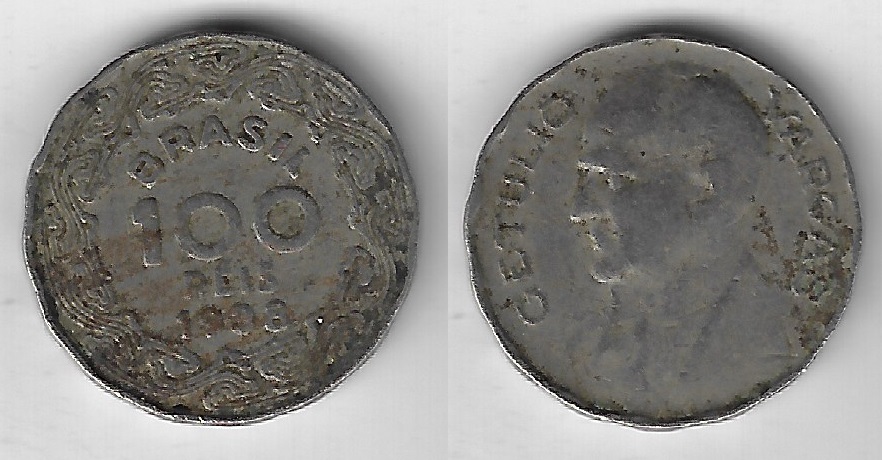 | 43253 | 100 Réis, 1938, Níquel, Getúlio Vargas, MBC | 1,50 | Foto |