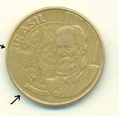 | 57099 | 25 Centavos, 2001, Aço revestido de Bronze, grande falha de cobrimento, MBC | 8,00 | Foto |