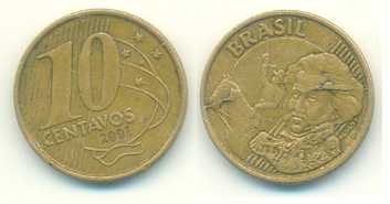 | 57980 | 10 Centavos, 2001, Aço revestido de Bronze, falha no cobrimento, MBC | 10,00 | Foto |