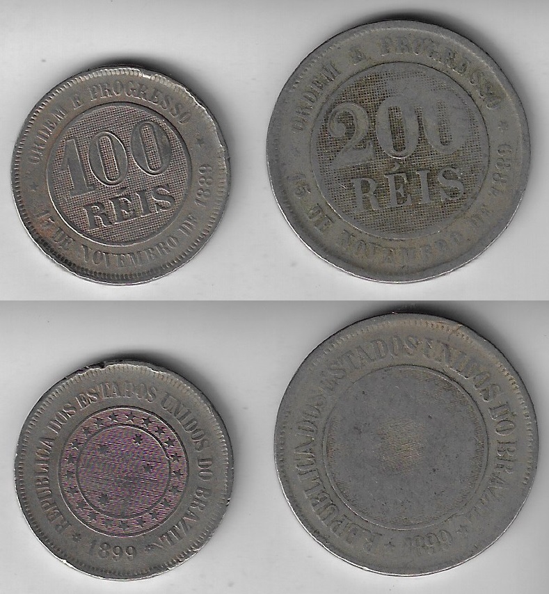 | 61402 | 100 e 200 Réis, 1899, Cupro-Níquel, MBC- | 65,00 | Foto |