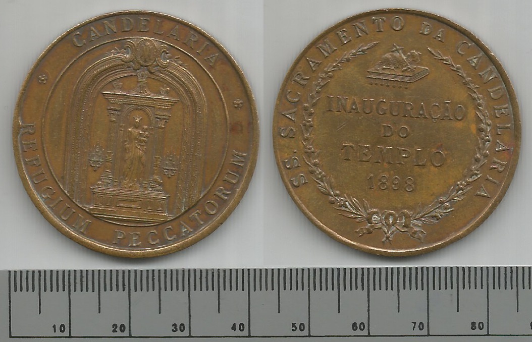 | 73816 | Medalha, 1898, Candelária - Inauguração do Templo, Bronze, Ø 41 mm, gravador Girardet, MBC/S | 150,00 | Foto |