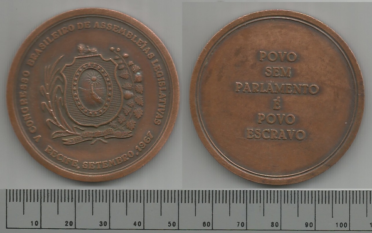| 73819 | Medalha, 1967, V Congresso Brasileiro de Assembleias Legislativas, Bronze, Ø 50 mm, S | 50,00 | Foto |