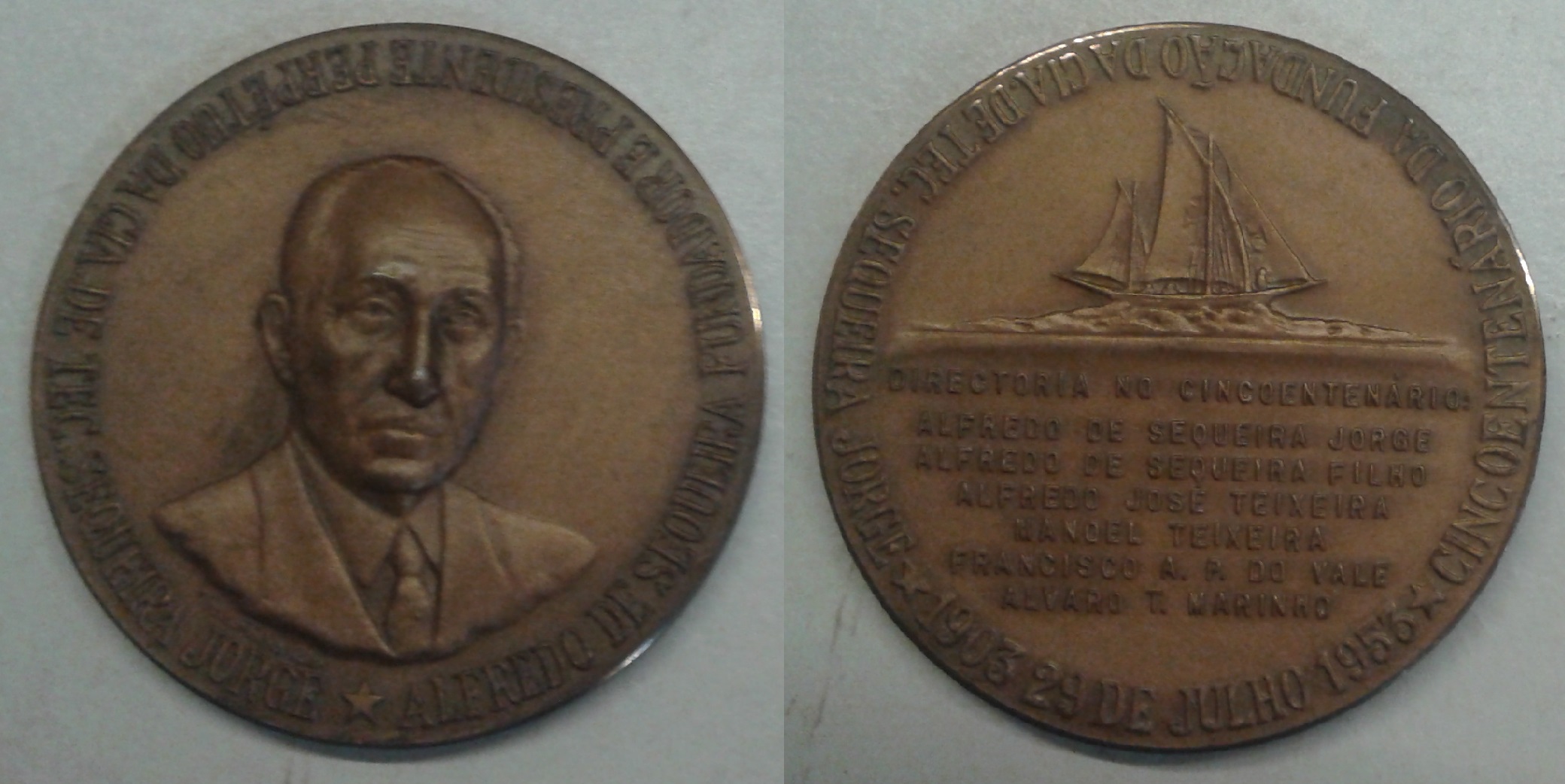| 73834 | Medalha, 1953, 50º Aniversário da Fundação da Cia. Tecidos Sequeira Jorge, Bronze, Ø 50 mm, gravador F. Marinho, FC | 50,00 | Foto |