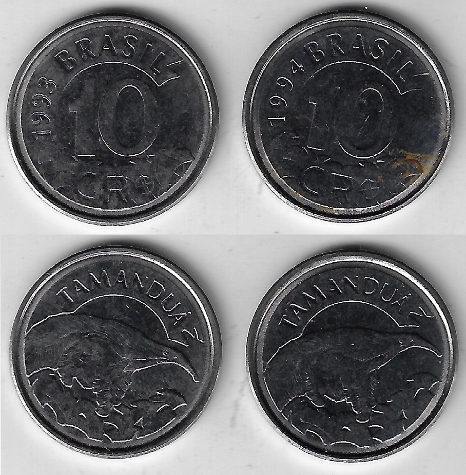 | 75441 | 10 Cruzeiros Reais, 1993 e 1994, Aço, Tamanduá, S | 3,50 | Foto |