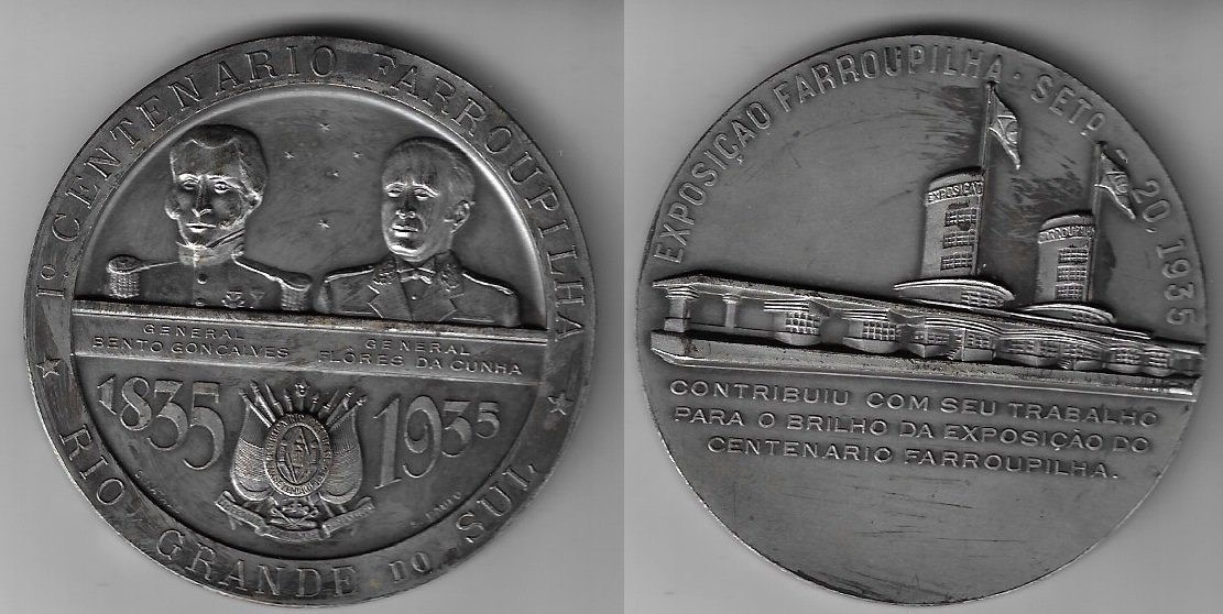 | 78249 | Medalha, 1935, alusiva ao Centenário Farroupilha, 122 gramas, Prata ?, Ø 66 mm, gravador Natale | 300,00 | Foto |