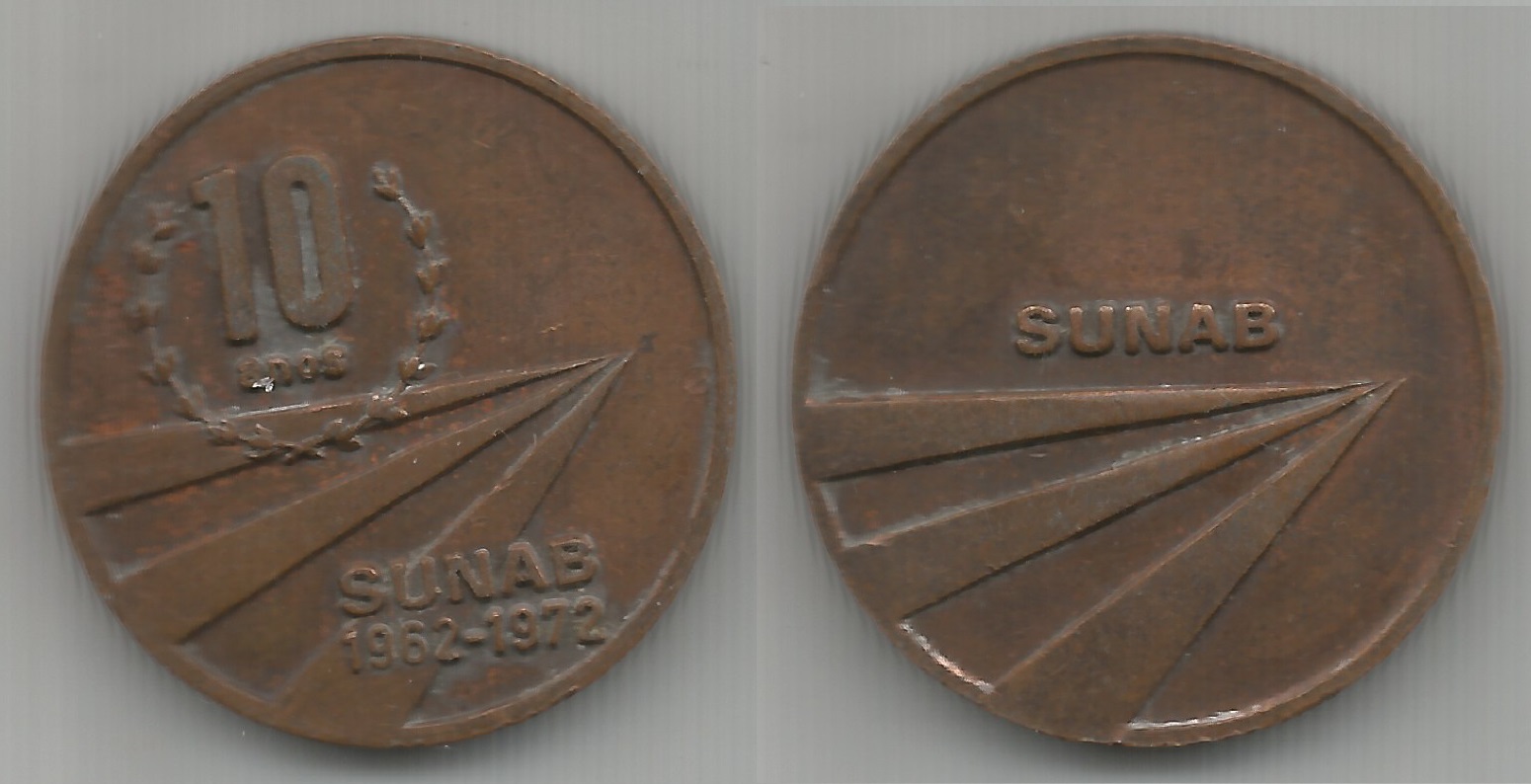 | 78253 | Medalha, 1972, 10 Anos da Sunab, 16 gramas, Bronze, Ø 30 mm, S | 30,00 | Foto |