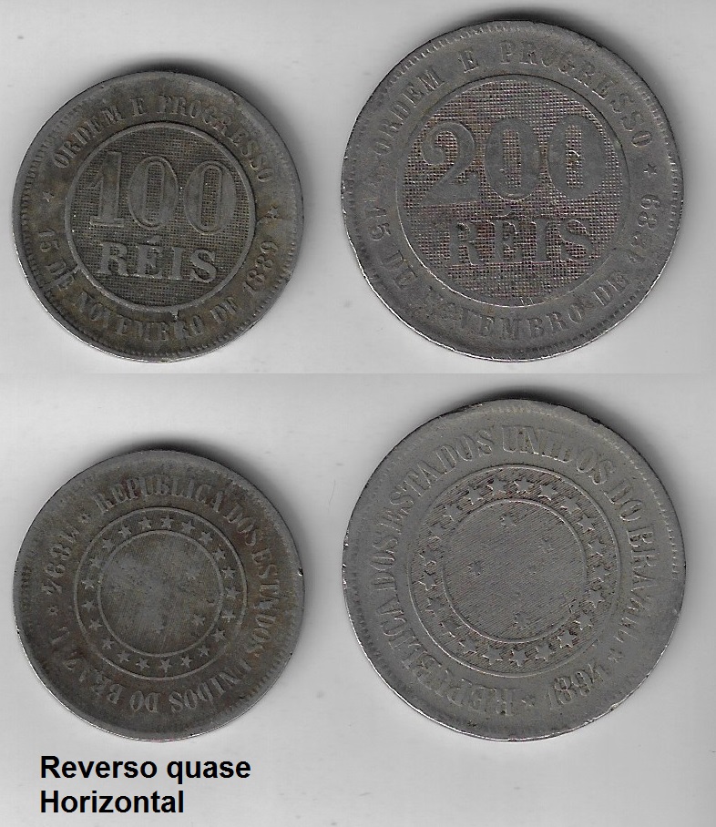 | 79718 | 100 e 200 Réis, 1894, Cupro-Níquel, 100 Réis com reverso quase horizontal, MBC | 130,00 | Foto |