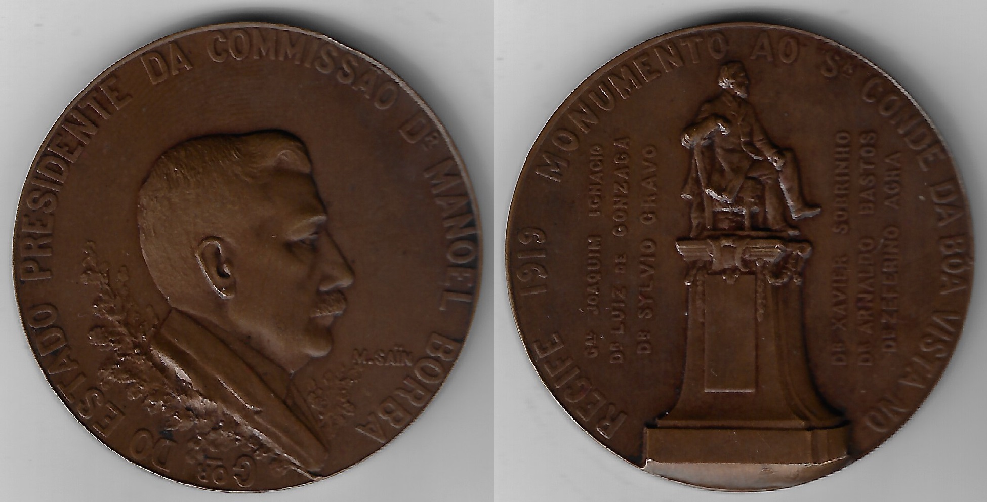 | 80515 | Medalha, 1919, alusiva a Inauguração do Monumento ao Sr. Conde de Boa Vista, em Recife, 29 gramas de Bronze, Ø 40 mm, gravador M. Sain | 168,00 | Foto |