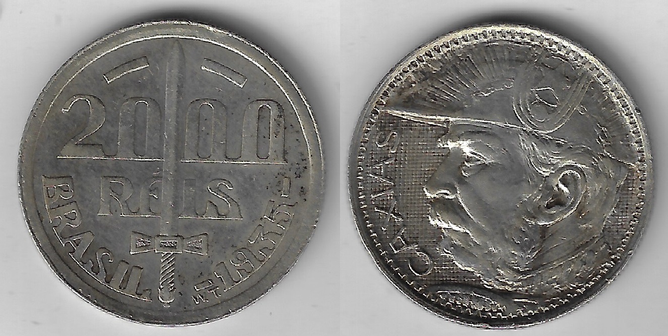 | 82468 | 2.000 Réis, 1935, 7,9 gramas de Prata .500, Duque de Caxias, S | 28,00 | Foto |