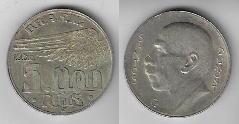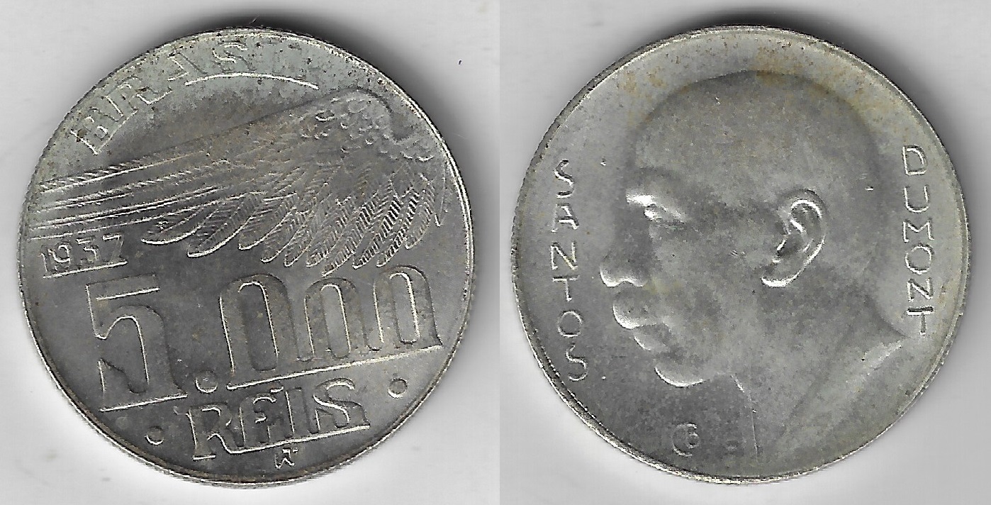 | 82470 | 5.000 Réis, 1937, 10 gramas de Prata .600, com pontos após os "S" de "Santos", FC | 70,00 | Foto |