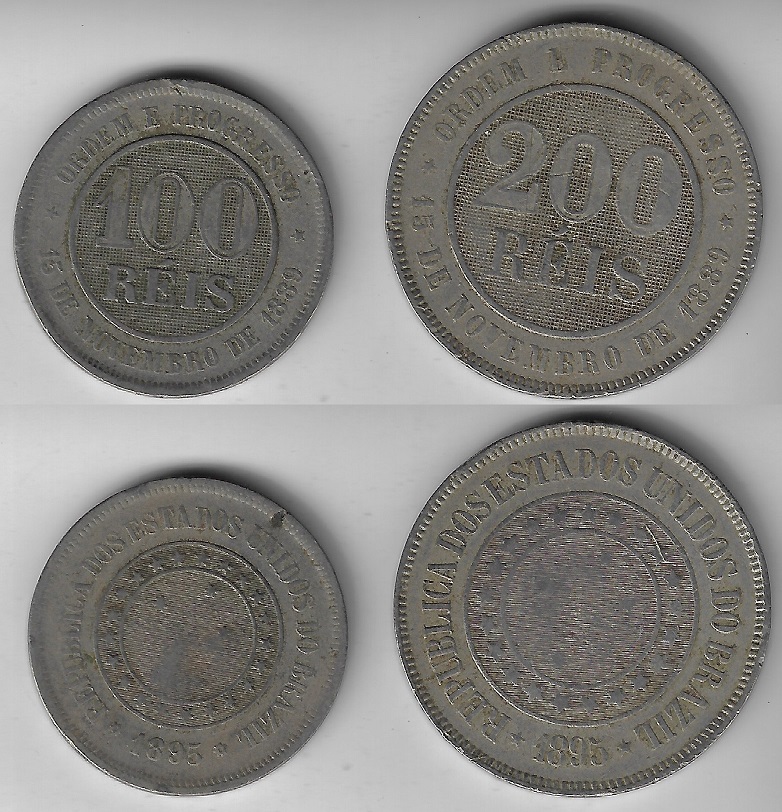 | 83479 | 100 e 200 Réis, 1895, Cupro-Níquel, MBC- | 45,00 | Foto |