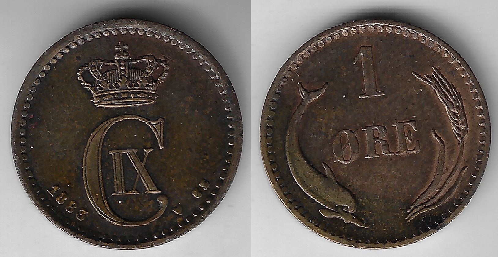 | 58568 | Dinamarca, 1 Ore, 1883, Bronze, KM-792.1, Ø 16 mm, S | 240,00 | Foto |