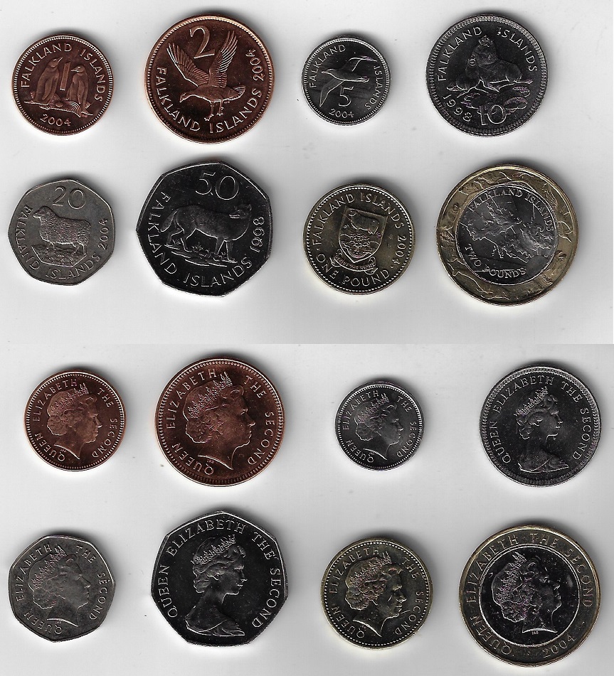 | 60878 | Ilhas Falklands, 1, 2, 5, 10, 20, 50 Cents, 1 e 2 Libras, 1998/2004, Fauna, FC | 120,00 | Foto |