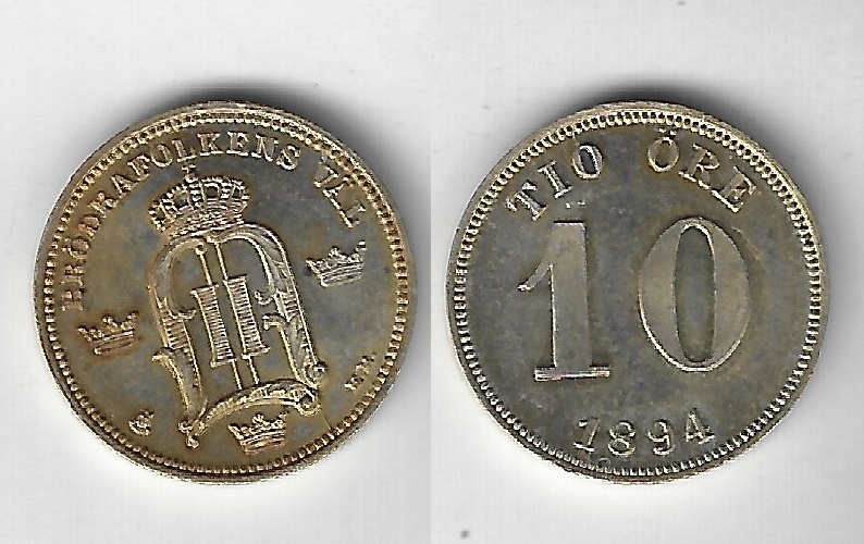 | 64104 | Suécia, 10 Ore, 1894, 1,45 gramas de Prata .400, KM-755, Ø 15 mm, S | 99,00 | Foto |