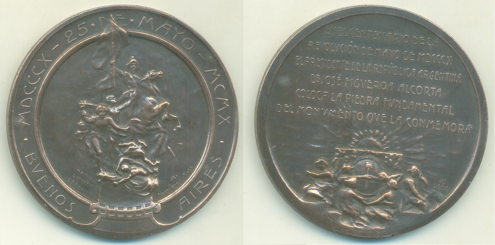 | 66711 | Argentina, 1910, medalha alusiva ao Centenário da Revolução de Maio, Bronze, Ø 64 mm, MBC | 60,00 | Foto |