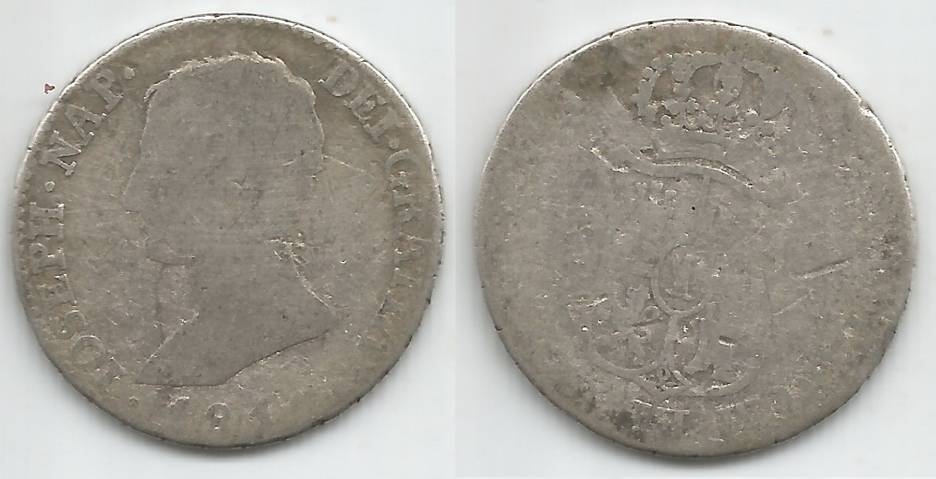 | 81044 | Espanha, 4 Reales, 1812, Rei Joseph Napoleon, 5,416 gramas de Prata .903, BC pois está levemente oxidada e com borda um pouco lisa | 51,00 | Foto |