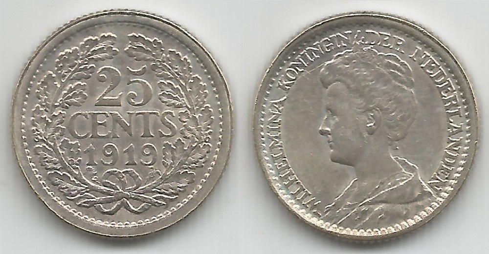 | 77568 | Holanda, 25 Cents, 1919, 3,58 gramas de Prata .640, KM-146, Ø 19 mm, S | 80,00 | Foto |