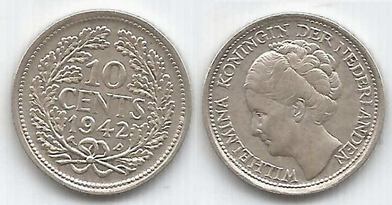 | 78038 | Curaçao, 10 Cents, 1942P, 1,4 gramas de Prata .640, KM-24, Ø 16 mm, FC | 106,00 | Foto |