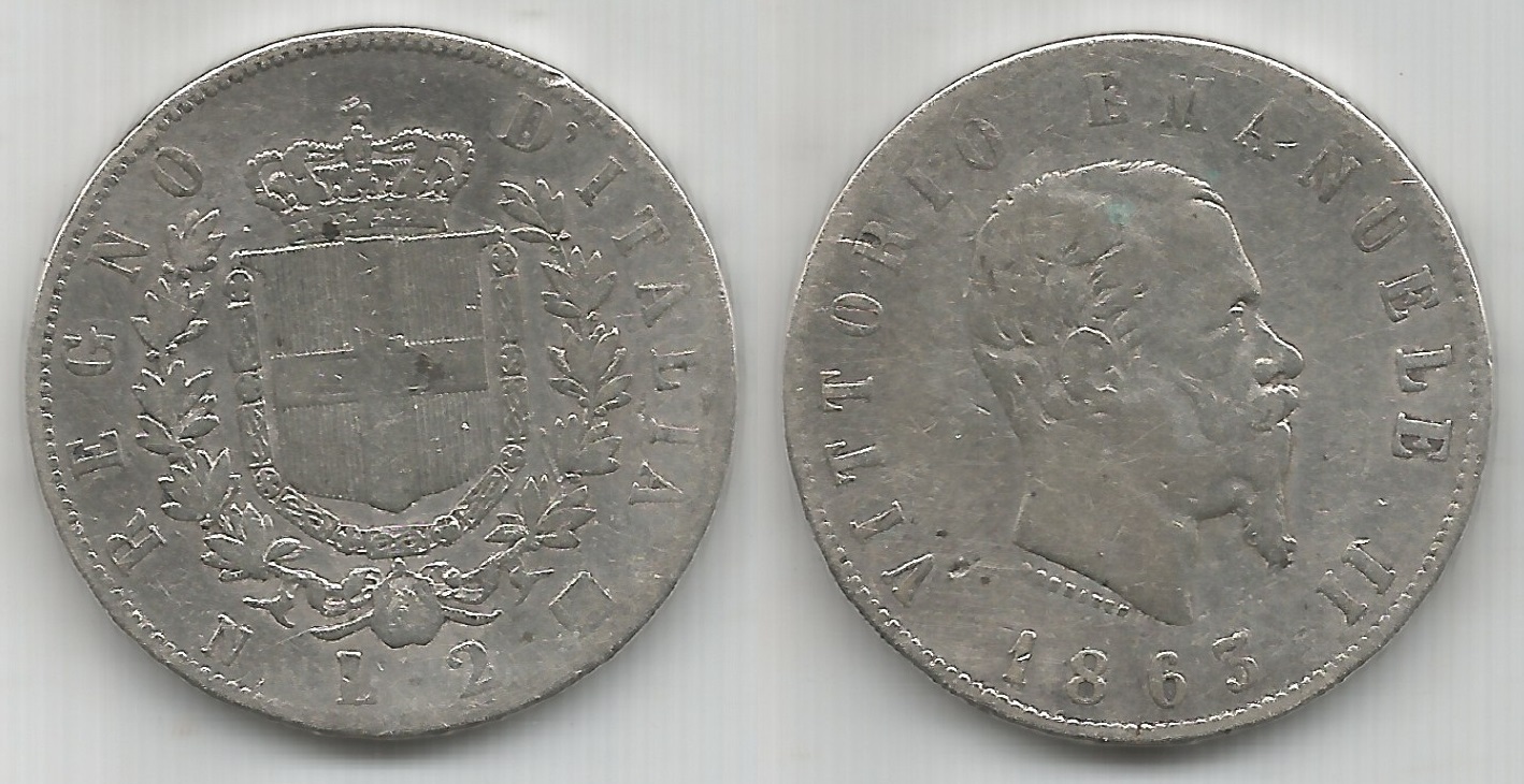 | 78048 | Itália, 2 Liras, 1863 N BN, 10 gramas de Prata .835, KM-16.1, Ø 27 mm, MBC- | 120,00 | Foto |