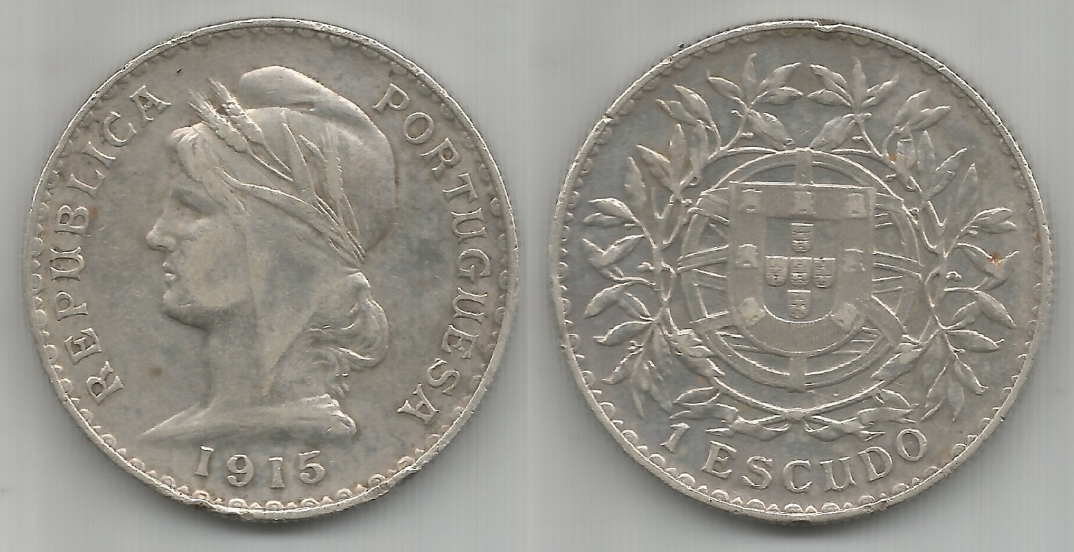 | 78058 | Portugal, 1 Escudo, 1915, 25 gramas de Prata .835, KM-564, Ø 37 mm, MBC | 240,00 | Foto |