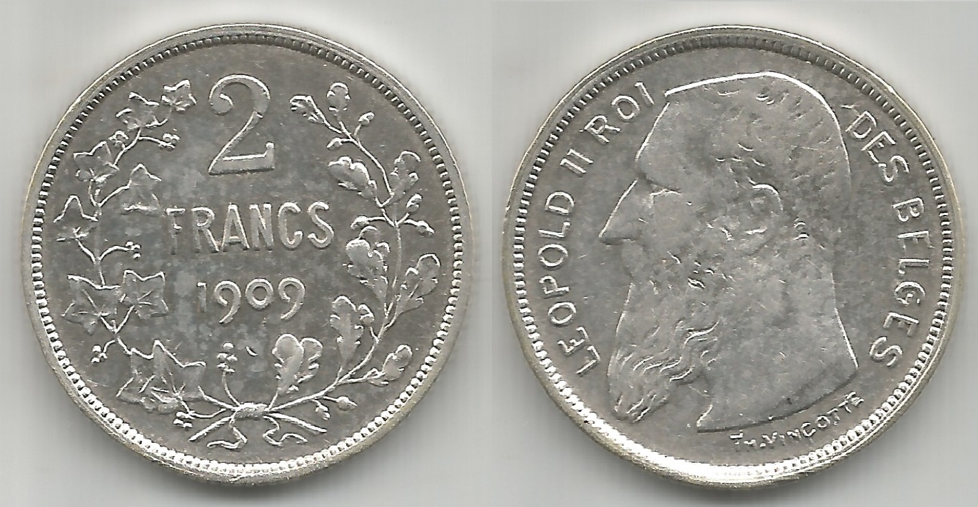 | 78089 | Bélgica, 2 Francos, 1909, 10 gramas de Prata .835, KM-59, Ø 27 mm, Rei Leopoldo II, Soberba | 99,00 | Foto |