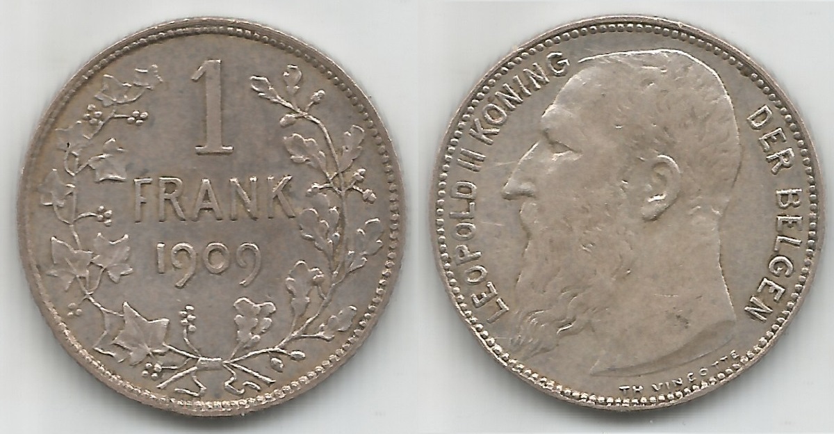 | 78090 | Bélgica, 1 Franco, 1909, 5 gramas de Prata .835, KM-57.2, Ø 22 mm, Rei Leopoldo II, S | 99,00 | Foto |