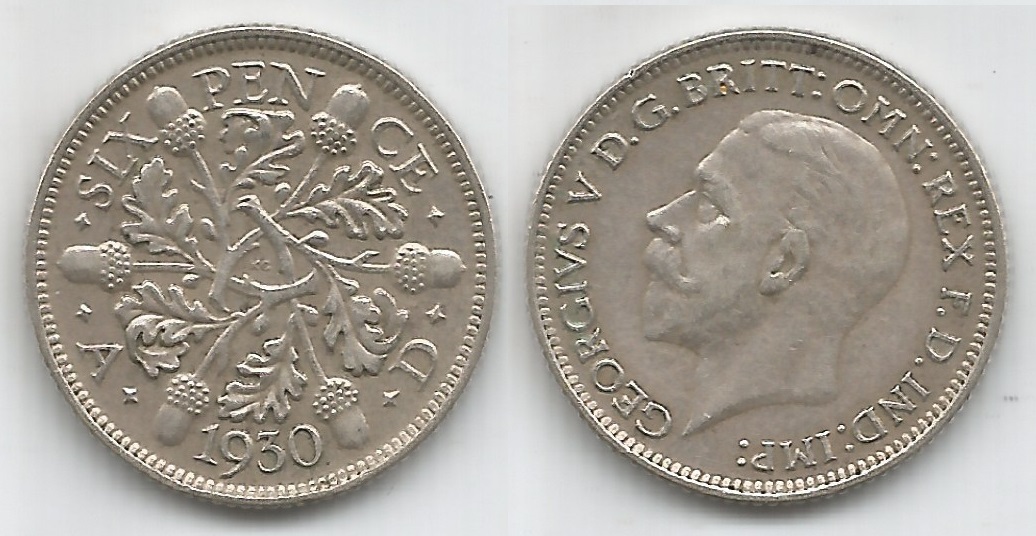 | 78132 | Grã-Bretanha, 6 Pence, 1930, 2,83 gramas de Prata .500, KM-832, Ø 19 mm, Rei George V, S/FC | 53,00 | Foto |
