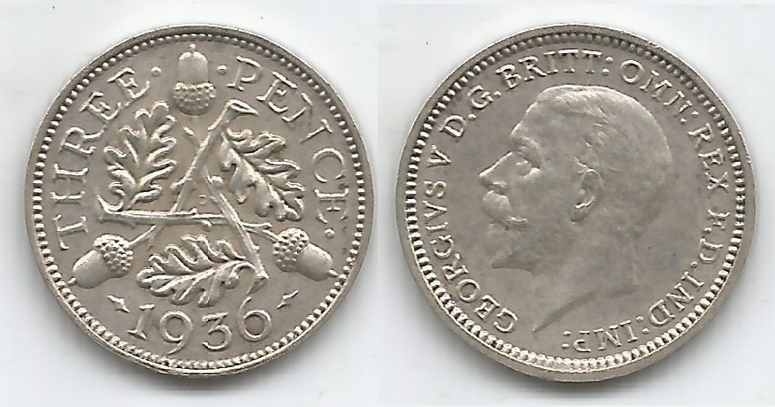| 78136 | Grã-Bretanha, 3 Pence, 1936, 1,41 gramas de Prata .500, KM-831, Ø 16 mm, Rei George V, FC | 50,00 | Foto |