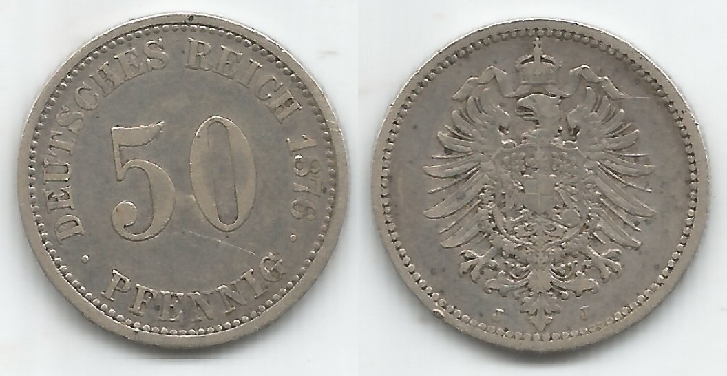 | 78165 | Alemanha, 50 Pfennig, 1876J, 2,78 gramas de Prata .900, KM-6, Ø 20 mm, MBC | 64,00 | Foto |