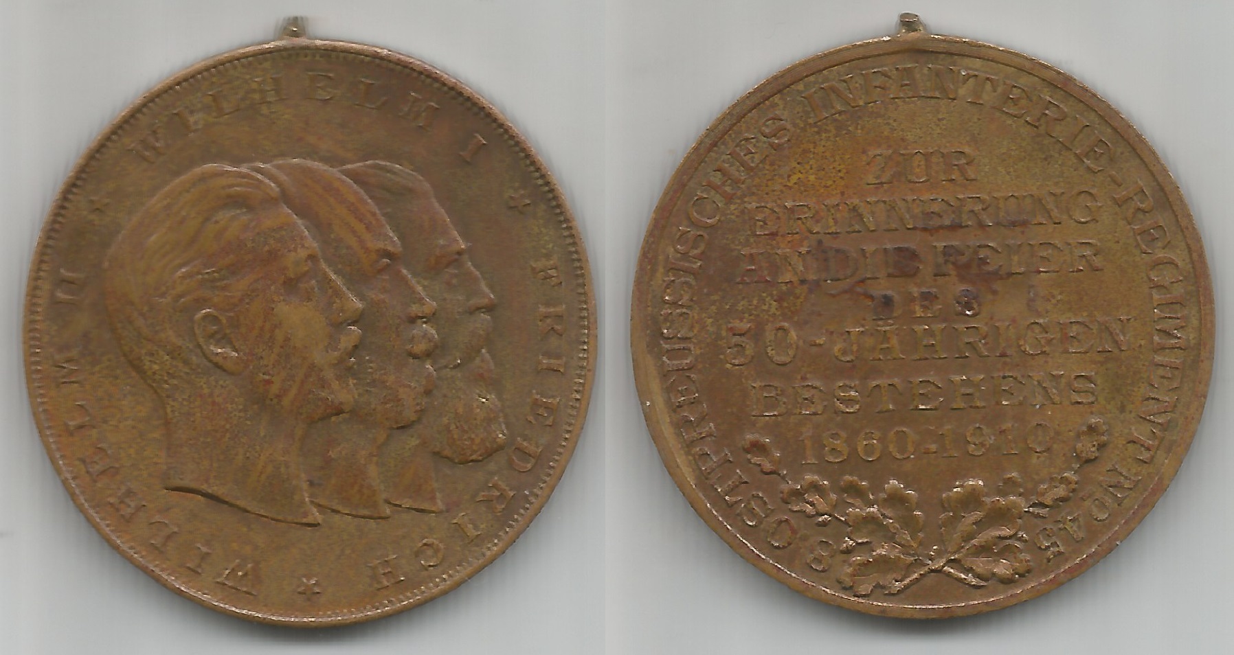 | 78288 | Alemanha / Prússia, 1910, medalha alusiva aos 50 Anos de Existência de Regimento de Infantaria, figurando 3 Reis, Bronze, Ø 34 mm, olhal quebrado | 120,00 | Foto |