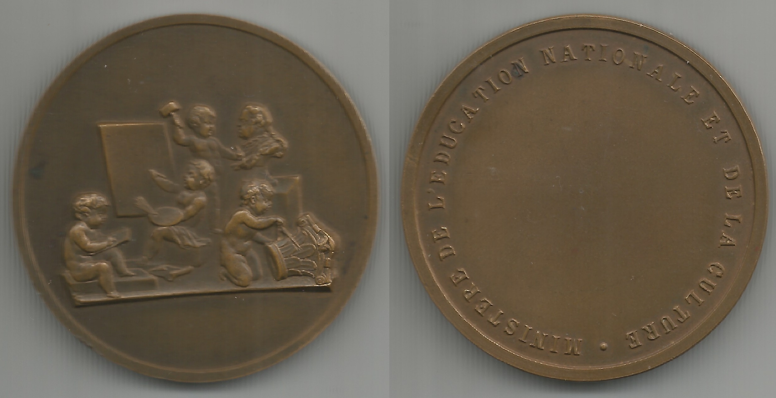 | 78535 | França, 19??, medalha alusiva ao Ministério da Educação National e da Cultura, Cobre, Ø 50 mm, 73 gramas | 60,00 | Foto |