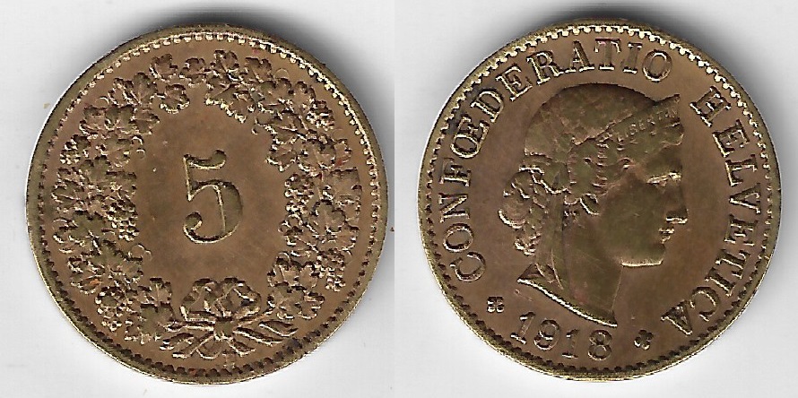 | 78696 | Suíça, 5 Rappen, 1918, Bronze, KM-26a, Ø 17 mm, S | 80,00 | Foto |
