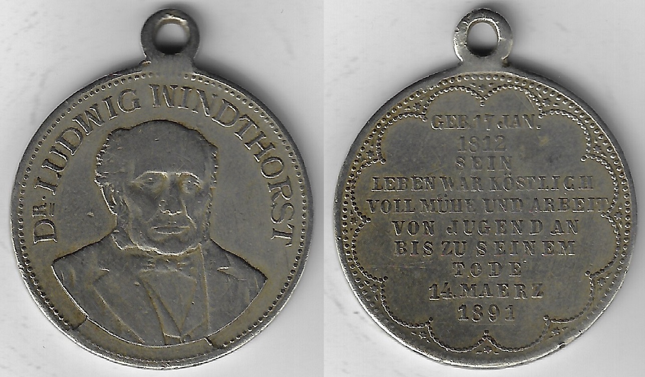 | 80559 | Alemanha, 1891, medalha alusiva ao político Ludwig Windthorst, Níquel, Ø 28 mm, 9,3 gramas, com olhal | 75,00 | Foto |