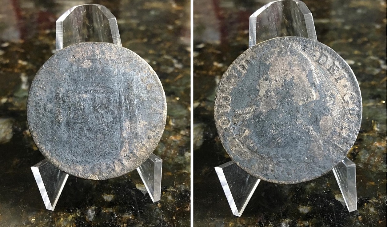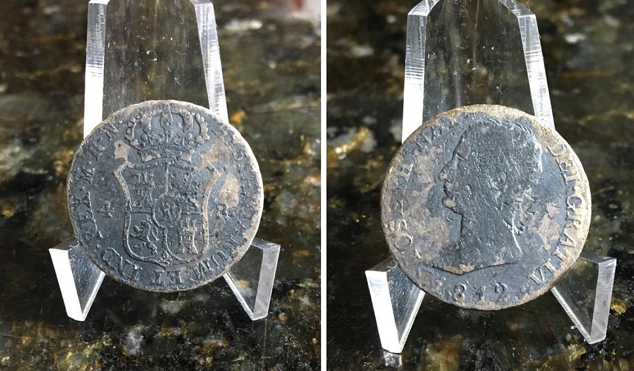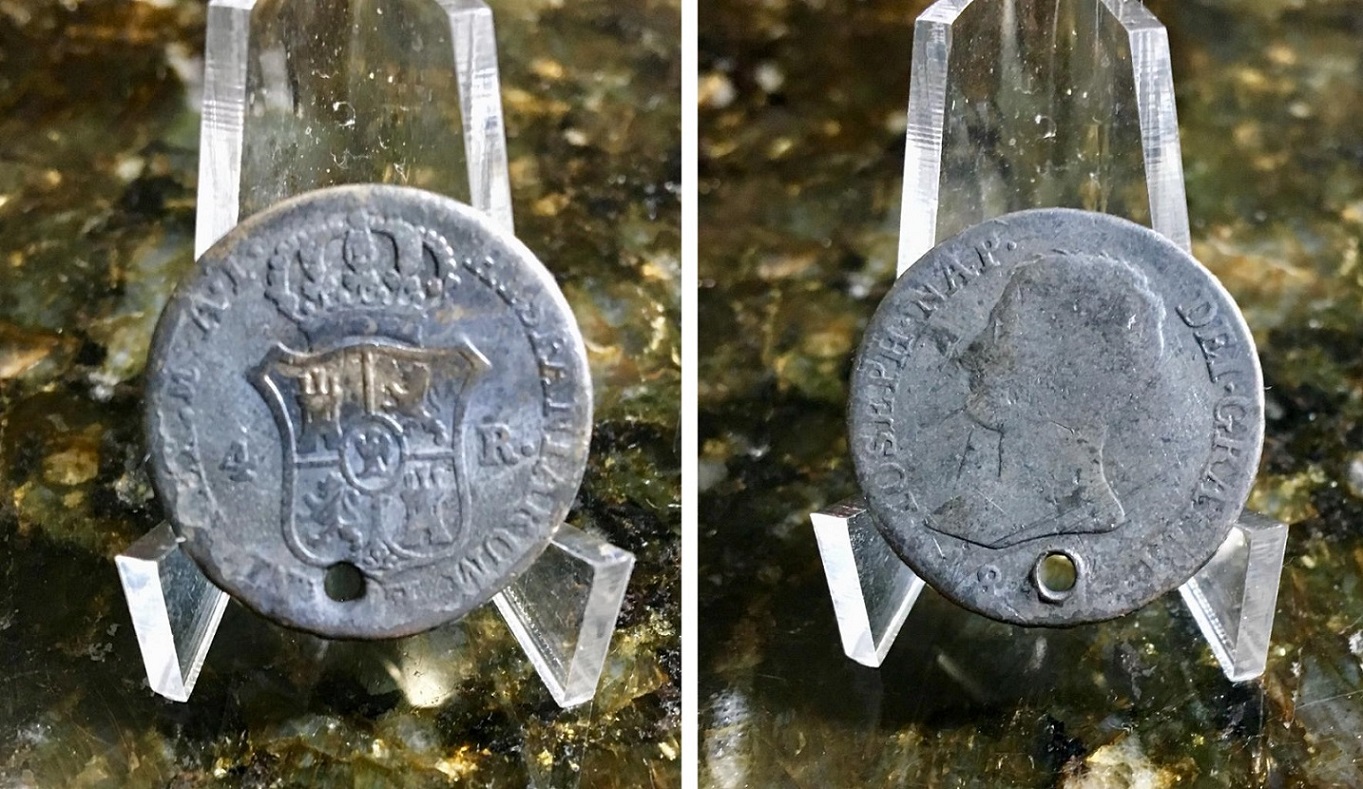 | 81040 | Espanha, 4 Reales, 1808/1813 (impossível afirmar o ano por causa do furo), Rei Joseph Napoleon, 5,416 gramas de Prata .903, BC pois está com furo e oxidada | 51,00 | Foto |