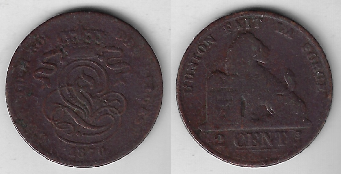 | 82475 | Bélgica, 2 Cêntimes, 1870, Cobre, KM-35.1, Ø21,5mm, MBC- | 13,00 | Foto |