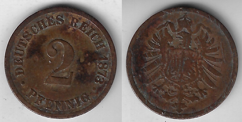 | 84111 | Alemanha, 2 Pfennig, 1873 B, Cobre, Ø 20 mm, MBC- | 300,00 | Foto |
