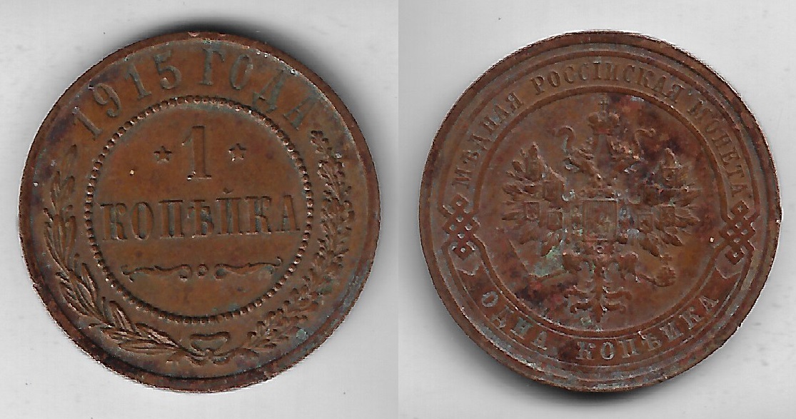 | 84119 | Rússia, 1 Kopek, 1915, Cobre, Ø 21,6 mm, MBC (catálogo US$8) | 45,00 | Foto |