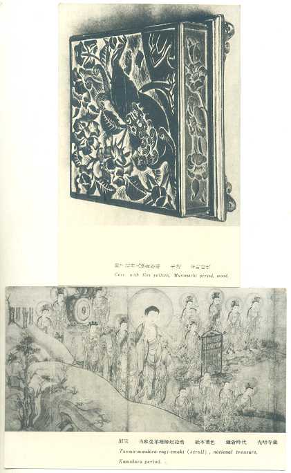 | 49726 | Japão, 1960s, 2 Cartões Postais com fotos monocromáticas de uma mesma série retratando tesouros nacionais do Período Muromachi e Kamakura, sem uso | 3,00 | Foto |