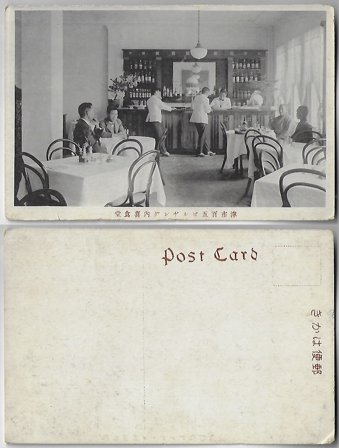 | 49737 | Japão, 1920s, cartão postal com foto preto e branco do bar no interior de um restaurante, na cidade de Tsu, sem uso | 10,00 | Foto |