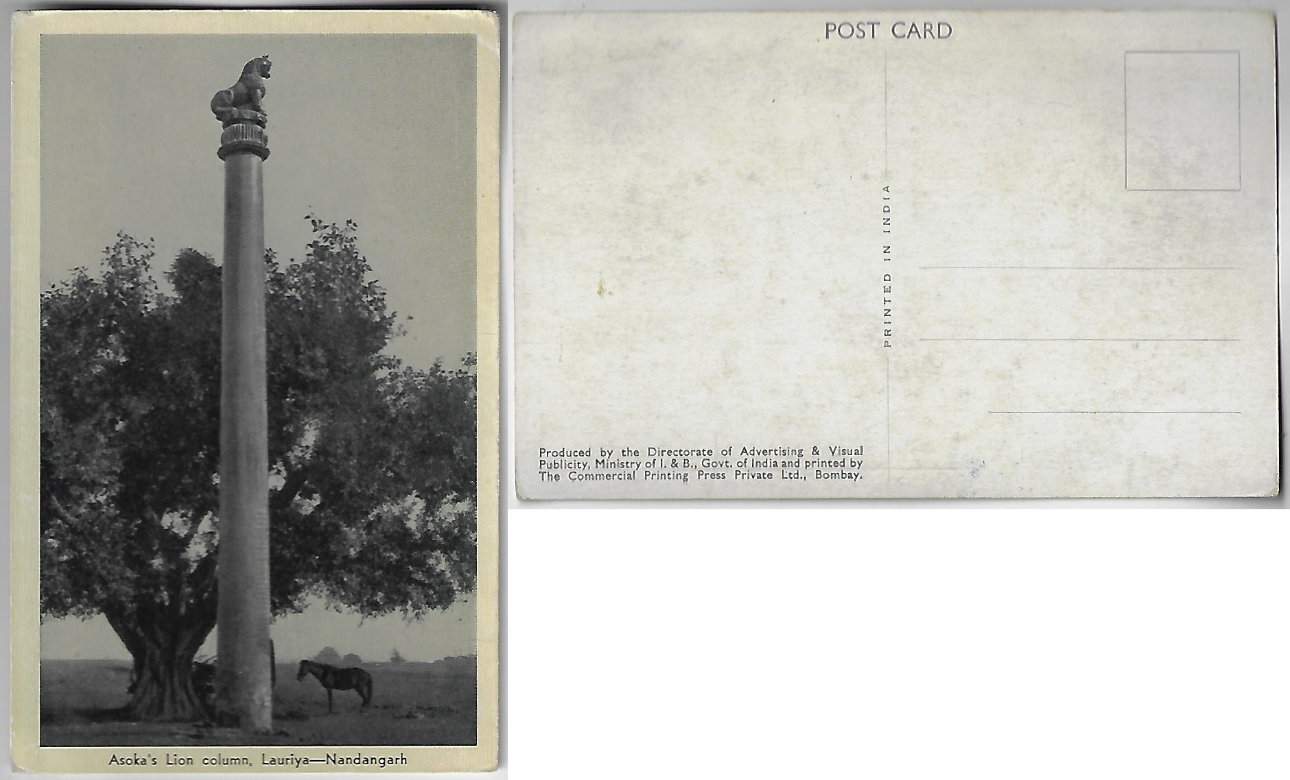 | 64688 | Índia, 1950s, cartão postal com foto preto e branco da Coluna do Leão de Asoka, em Lauriya Nandangarh, The Commercial Printing Press Private Ltd., unused | 10,00 | Foto |