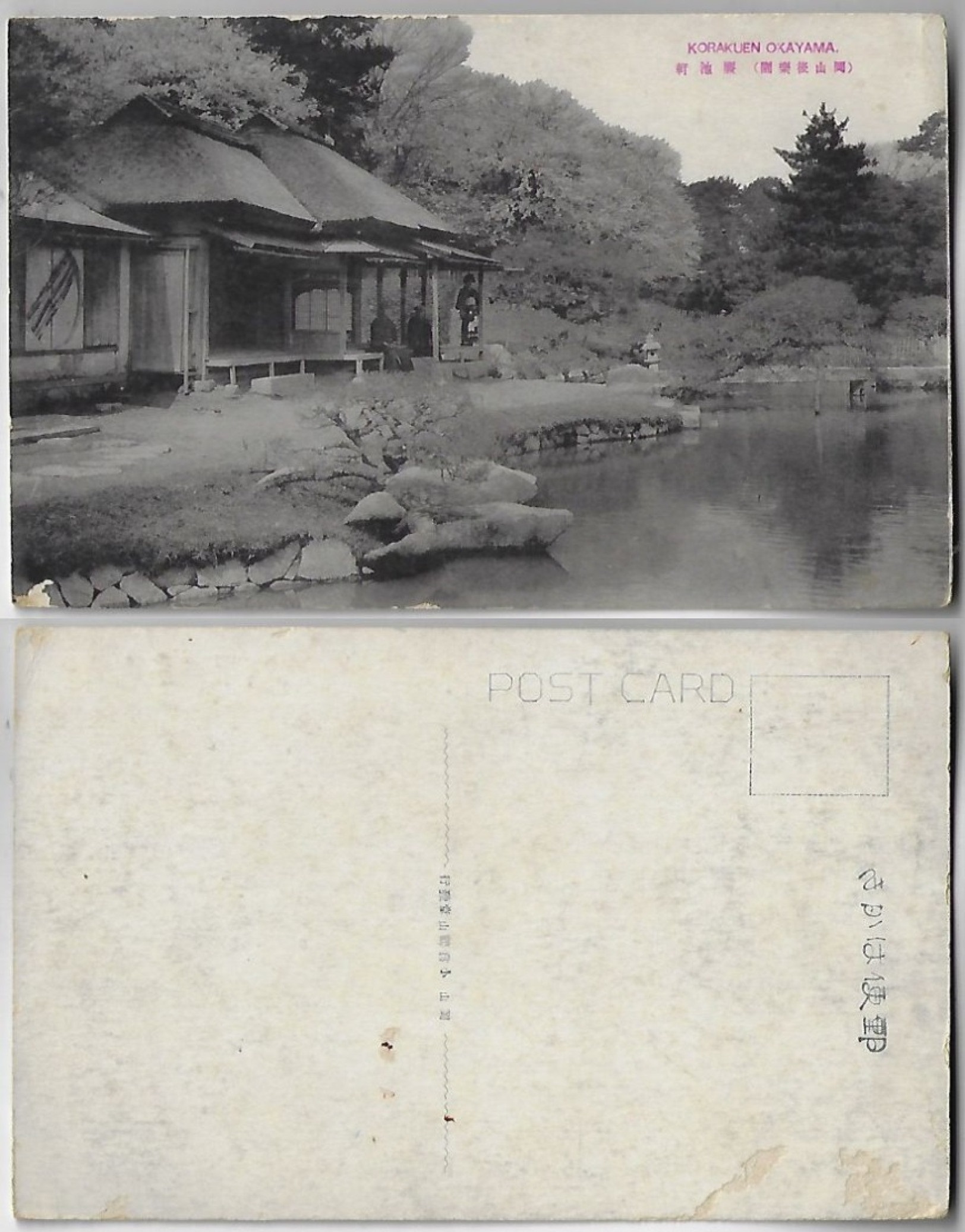 | 78452 | Japão, 1920s, cartão postal com foto preto e branco do Jardim Korakuen, em Okayama, lago em destaque, sem uso, com roídos | 10,00 | Foto |