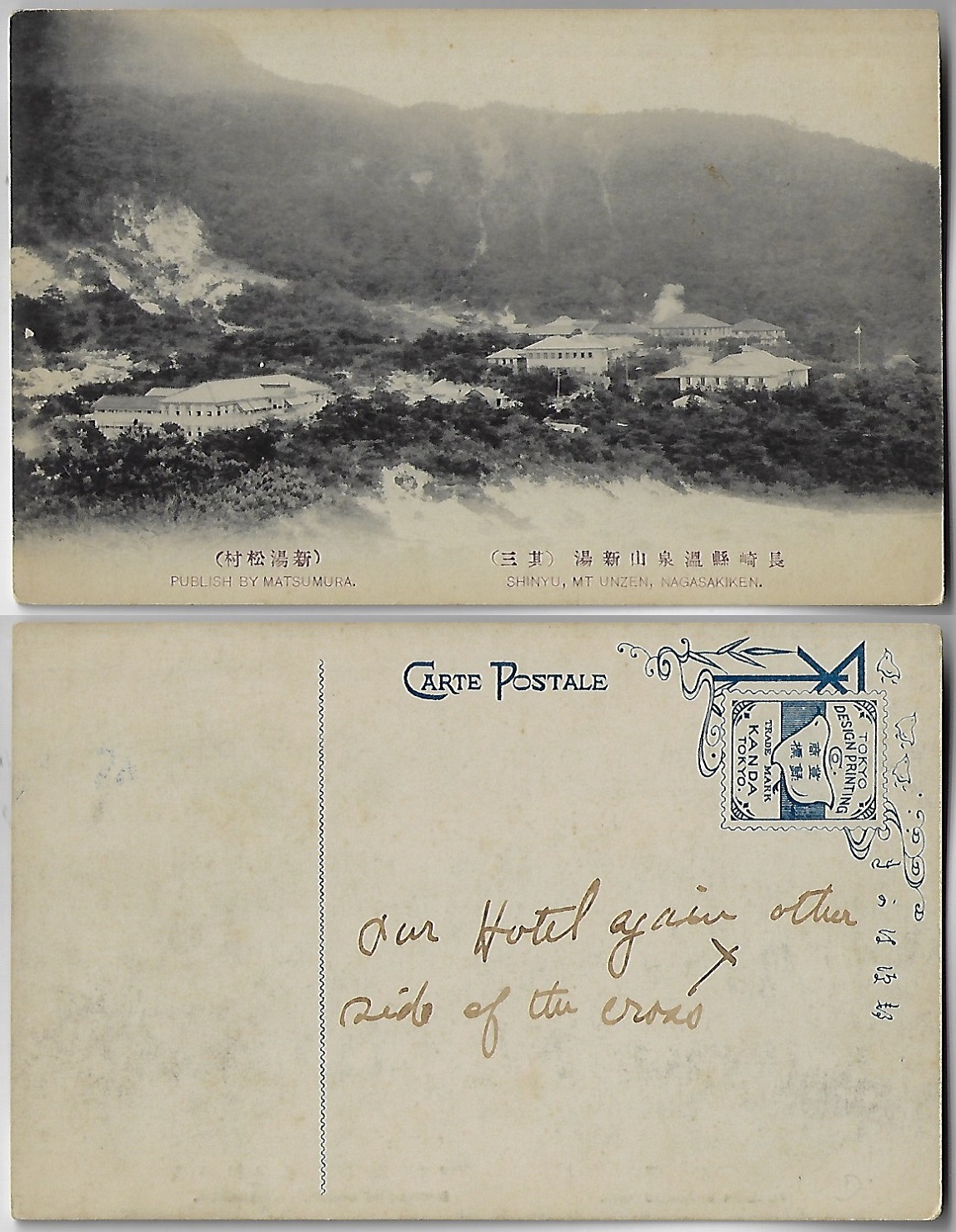 | 82579 | Japão, 1920s, cartão postal com foto preto e branco do Monte Unzen, especificamente da área de Shinyu, Editor Matsumura / Kanda, sem uso | 10,00 | Foto |