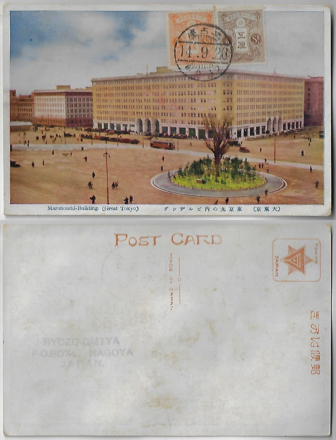 | 82583 | Japão, 1926, cartão postal com foto colorizada do Edifício Marunouchi, em Tóquio, 2 selos colados no canto da foto | 10,00 | Foto |