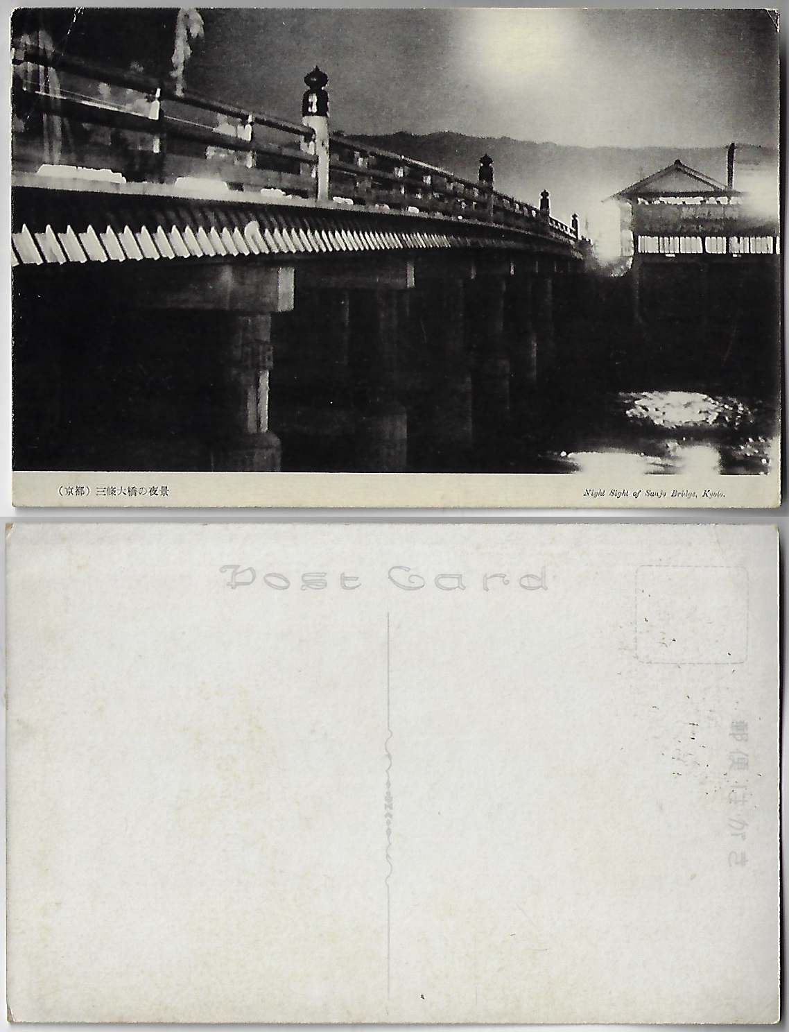 | 82639 | Japão, 1930s, cartão postal com foto preto e branco de Vista Noturna da Ponte Sanjo, em Kyoto, sem uso | 10,00 | Foto |