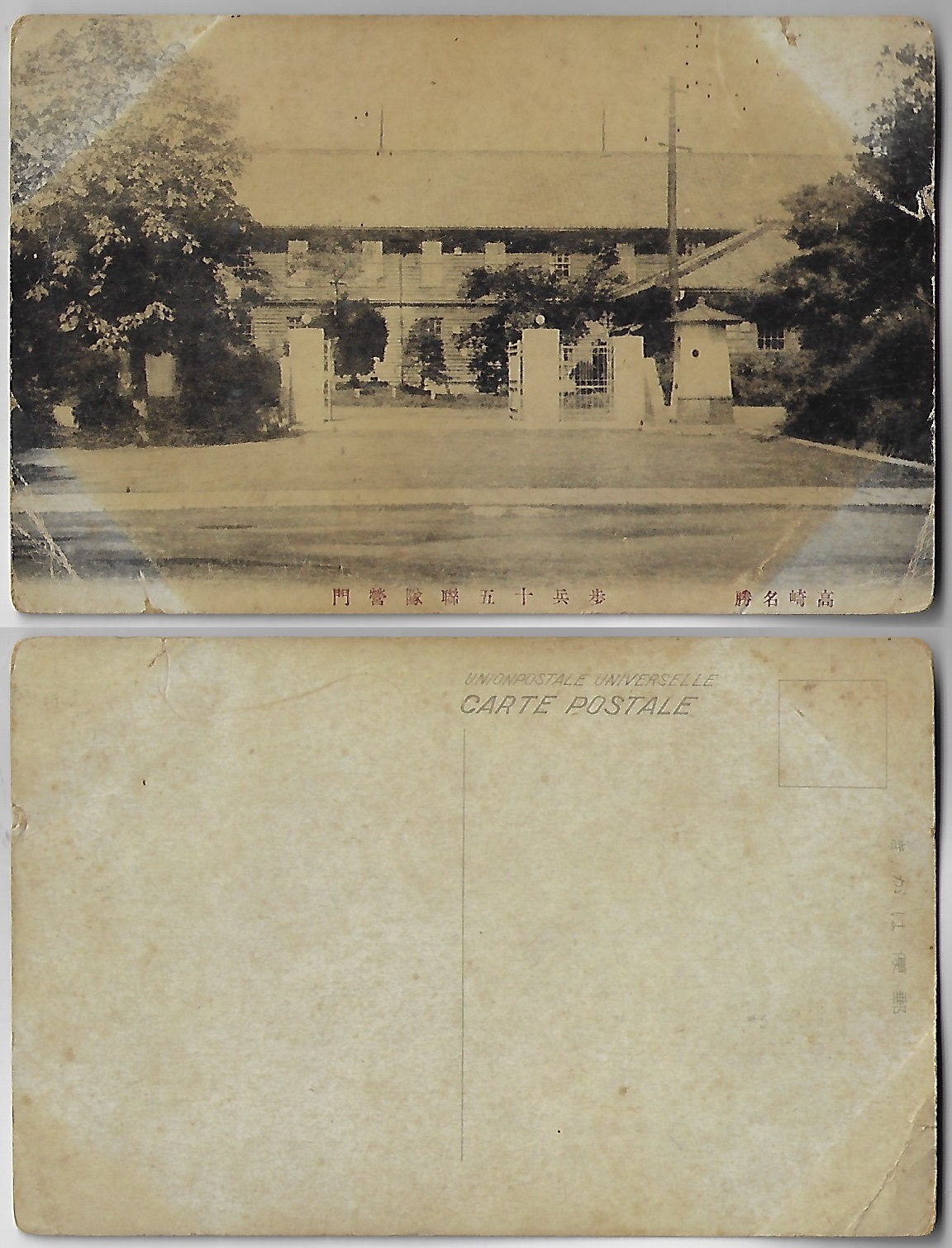 | 83563 | Japão, 1930s, cartão postal com foto preto e branco do Portão do quartel do 15º Regimento de Infantaria, em Takasaki, sem uso | 10,00 | Foto |