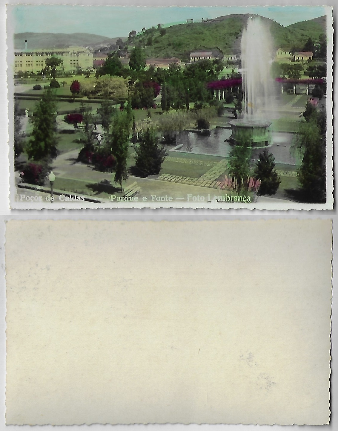 | 17582 | MG, 1940s, Cartão Postal com foto monocromática da Fonte Luminosa, em Poços de Caldas, papel fotográfico Wessel, sem uso | 10,00 | Foto |