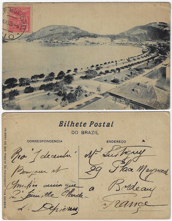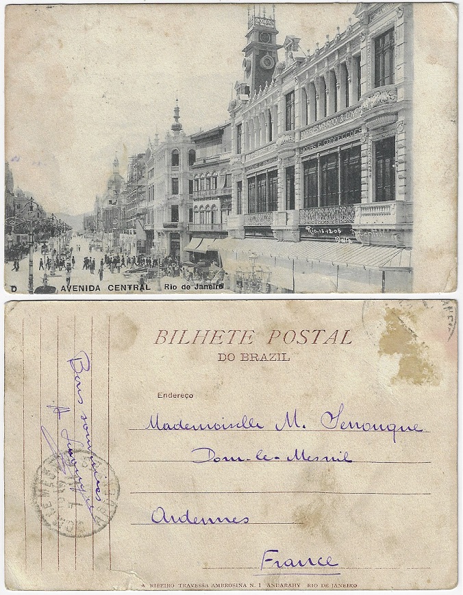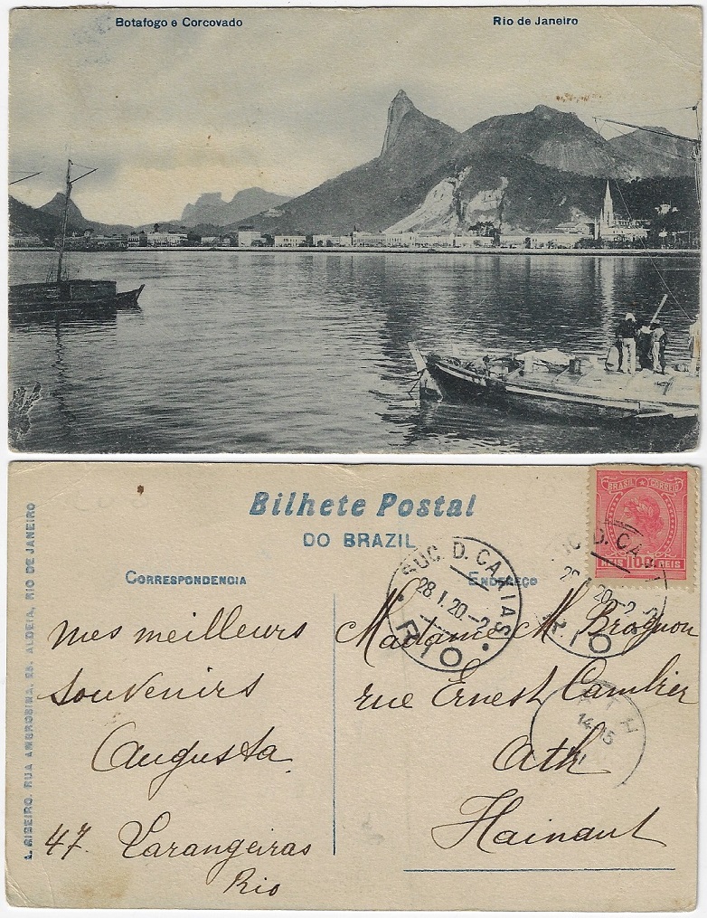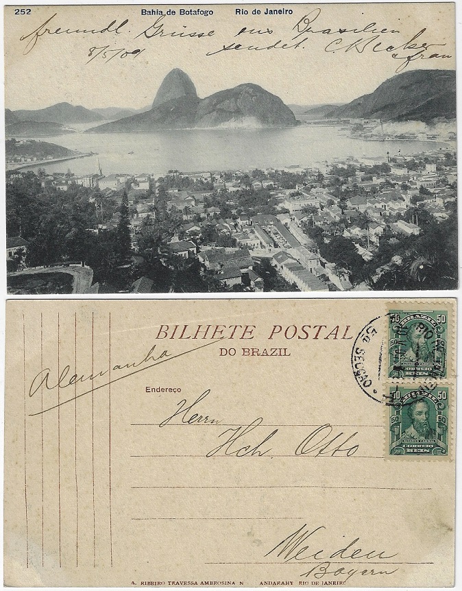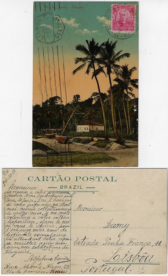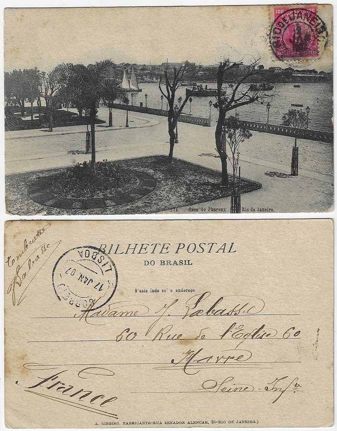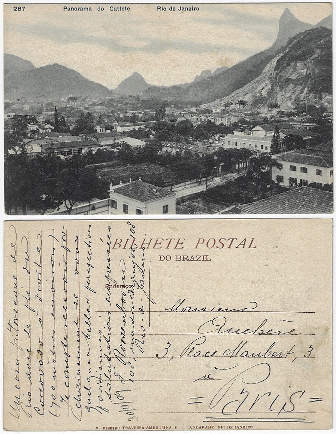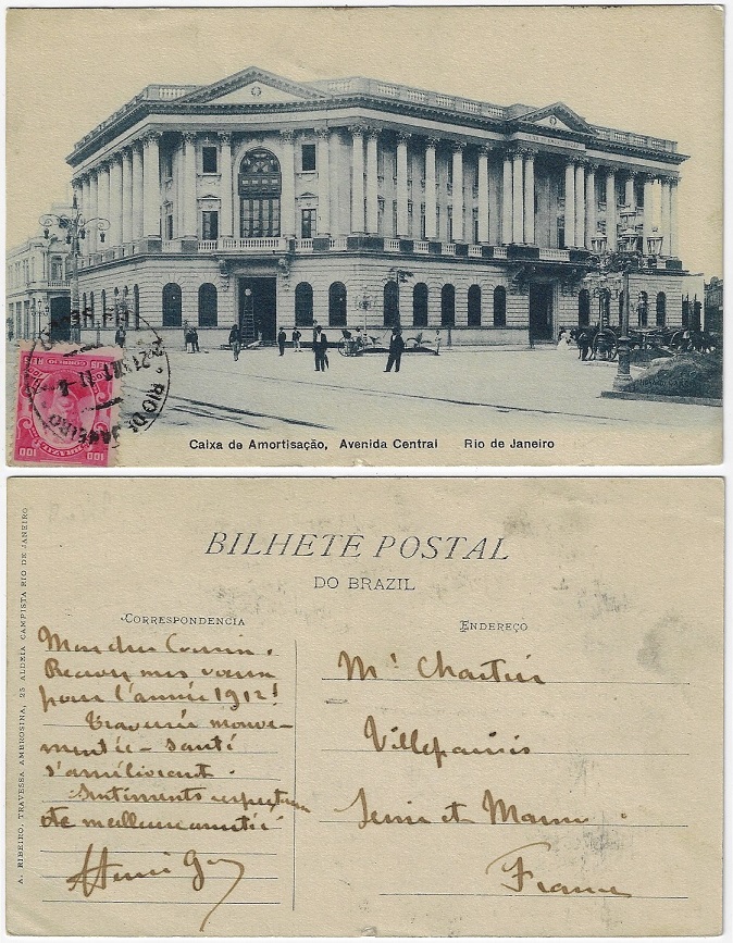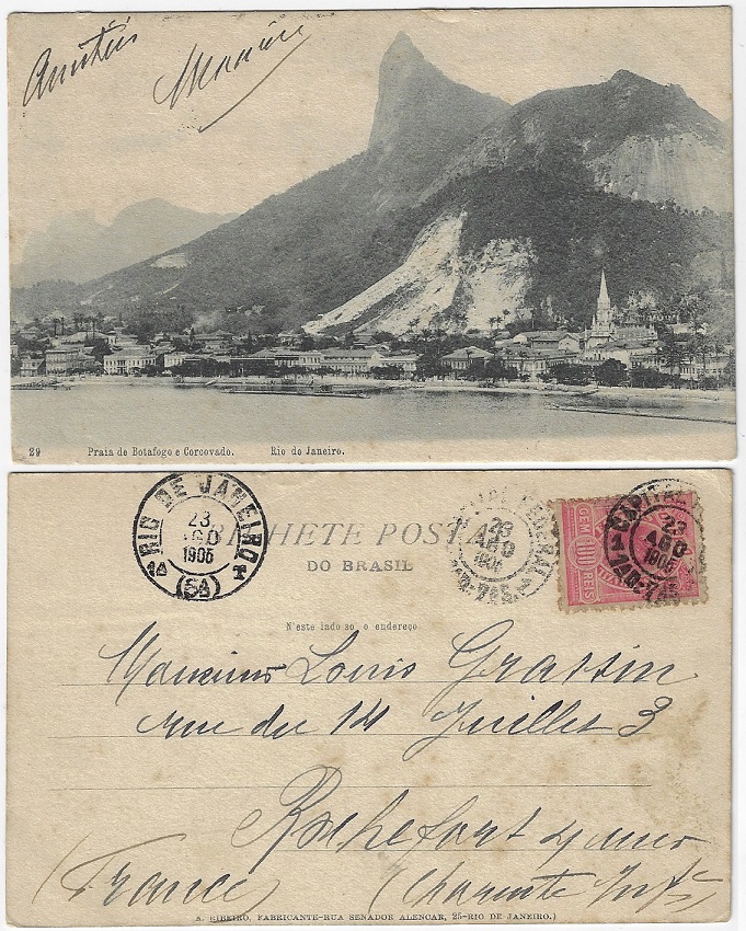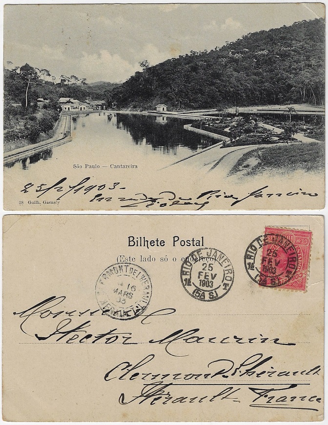 | 70660 | MG, 1905, cartão postal com foto preto e branco de Cambuquira, fontes minerais, enviado de Cambuquira (25/2), carimbo ferroviário "Ambte Rio SP4 (28/2), para o Rio de Janeiro, agência Duque de Caxias (1/3), selo Madrugada Republicana 50 Réis | 50,00 | Foto |